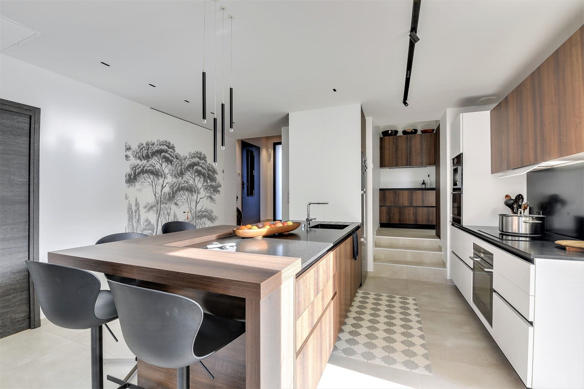 L’îlot de cuisine, par exemple, est une solution idéale pour centraliser les zones de travail tout en offrant un espace convivial où s’installer, discuter et profiter. Chez Agencements MG, nous veillons à ce que chaque élément de votre cuisine soit conçu pour optimiser votre confort et créer une ambiance chaleureuse et accueillante.